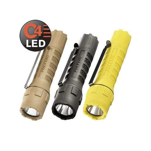Mount this super bright, compact flashlight to your helmet or carry in your hand for up to 275 lumens of powerfully focused lighting. Advanced Streamlight C4 LED technology delivers 275 lumens of piercing white light for 3 hours continuous regulated runtime at over 90% of full brightness on High. At 5.34” long, and 4.2 oz., the powerful PolyTac produces a central beam with optimum peripheral illumination for easier navigation and improved situational awareness.