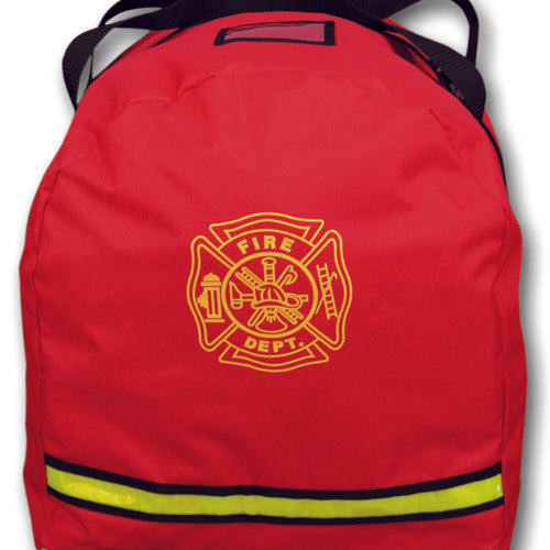 EMI introduces its newest and largest Gear Bag - The Deluxe Oversized Gear Bag. This five compartment bag has ample room for all of your extra equipment and gear. The extra large side pocket measures 16'' x 17'' x 8'' and can hold a firefighters helmet with ease, while the right compartment can hold a scuba mask. The red bag comes standard with a maltese cross imprinted on both sides, reflective yellow trim, an adjustable shoulder strap and an ID window.